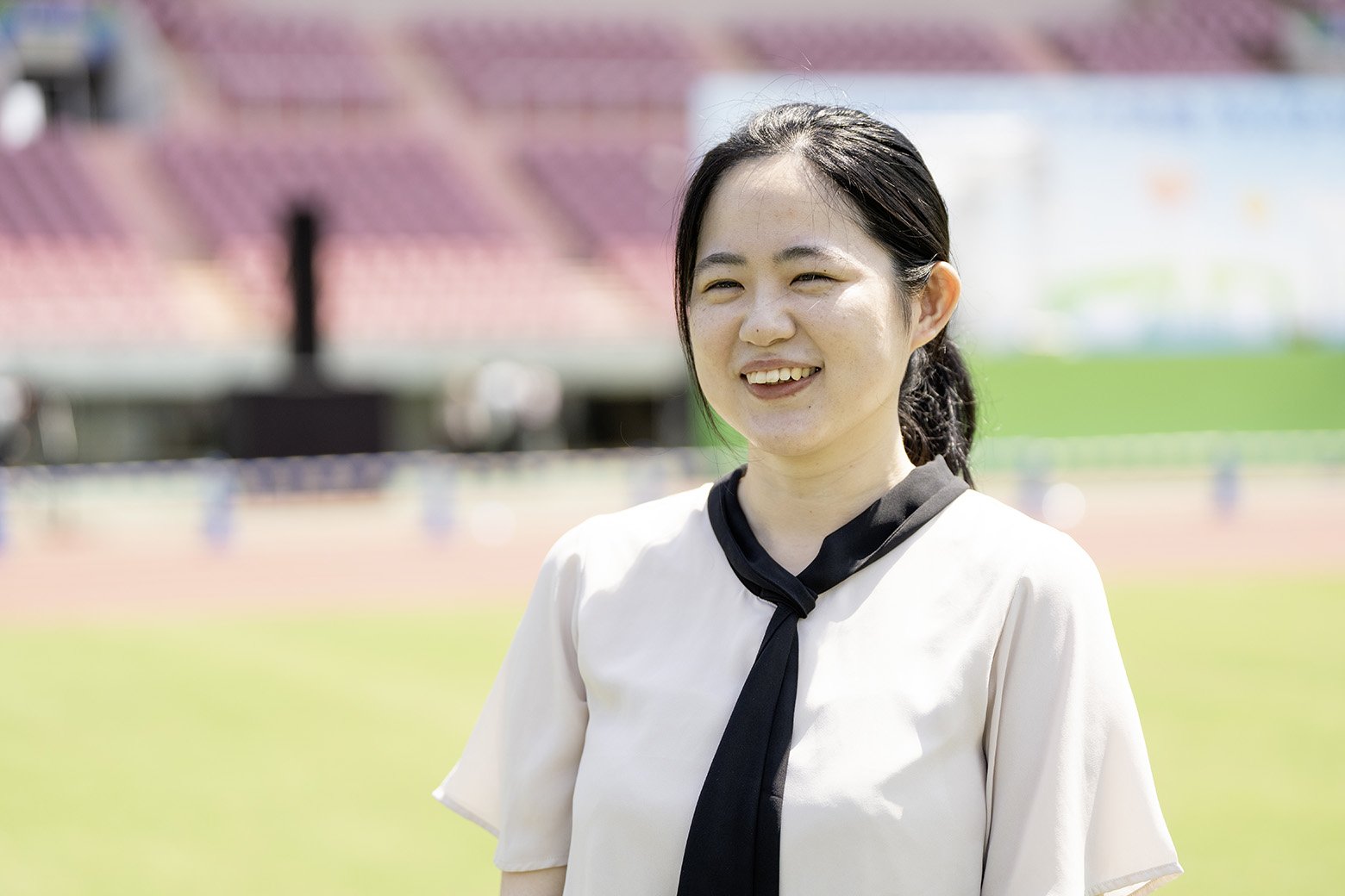 「『気持ちのよい朝のスタートが切れた』と参加者が笑顔になってくださったら、それが一番です。私は場内誘導を行うので、万一、体調不良などのトラブルが起きても、すぐに対処できるように目配りしたいです」(井上さん)
