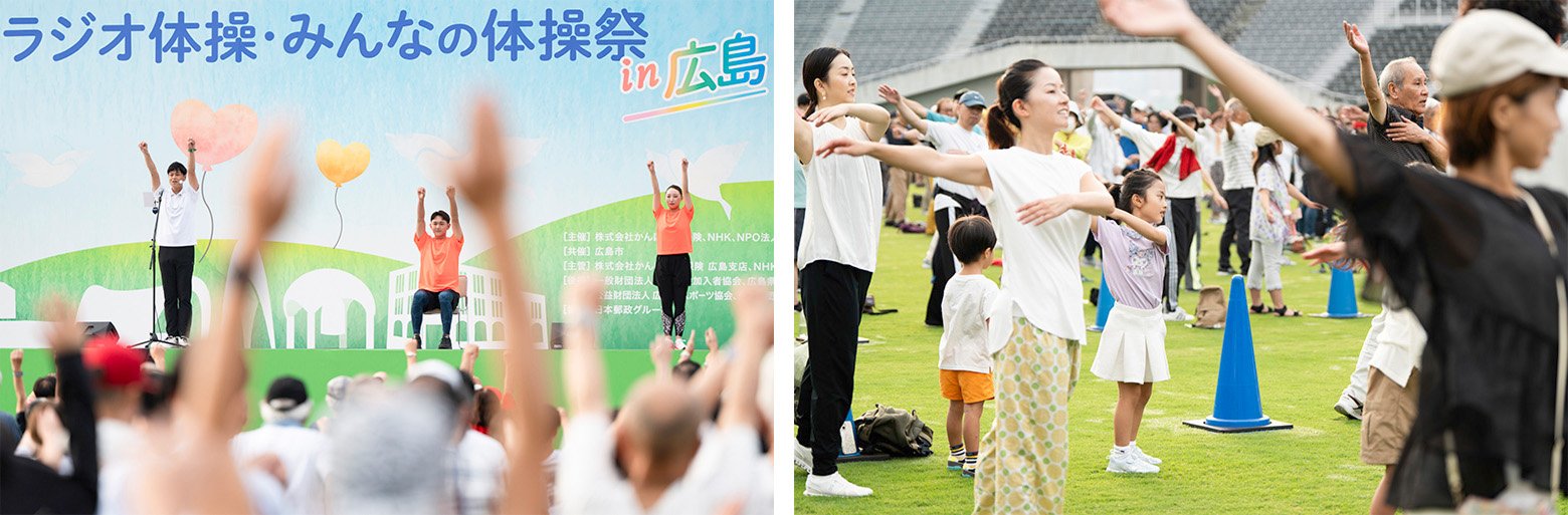 2025年8月17日、広島県広島市で行われた「1000万人ラジオ体操・みんなの体操祭」。早朝にもかかわらず、約1,700人もの方々が会場に集まり、テレビ・ラジオ放送を通して全国の皆さんとともに、ラジオ体操で爽やかに一日をスタートさせました。