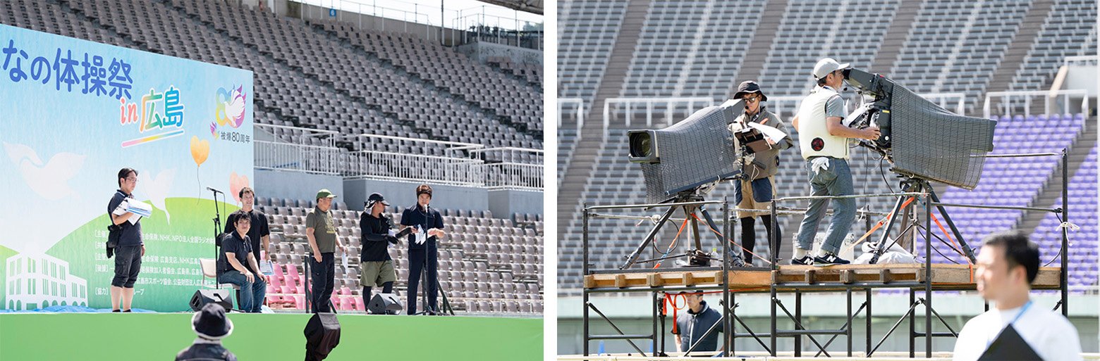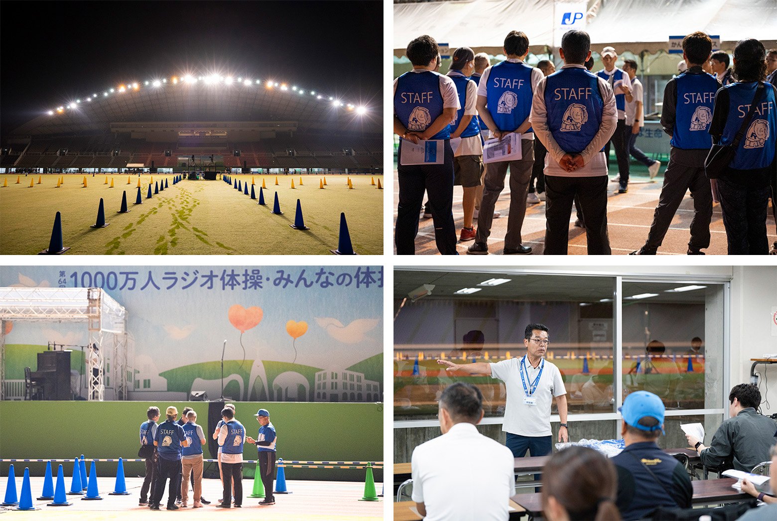 「1000万人ラジオ体操・みんなの体操祭」は、年に一度開かれる国内最大級のラジオ体操イベント。イベントの模様はNHKの総合テレビとラジオ第1で生放送され、全国各地から多くの参加者が集まります。今年は広島市での開催となり、かんぽ生命の広島支店と中国エリア本部が中心となって半年にわたり準備を進めてきました。