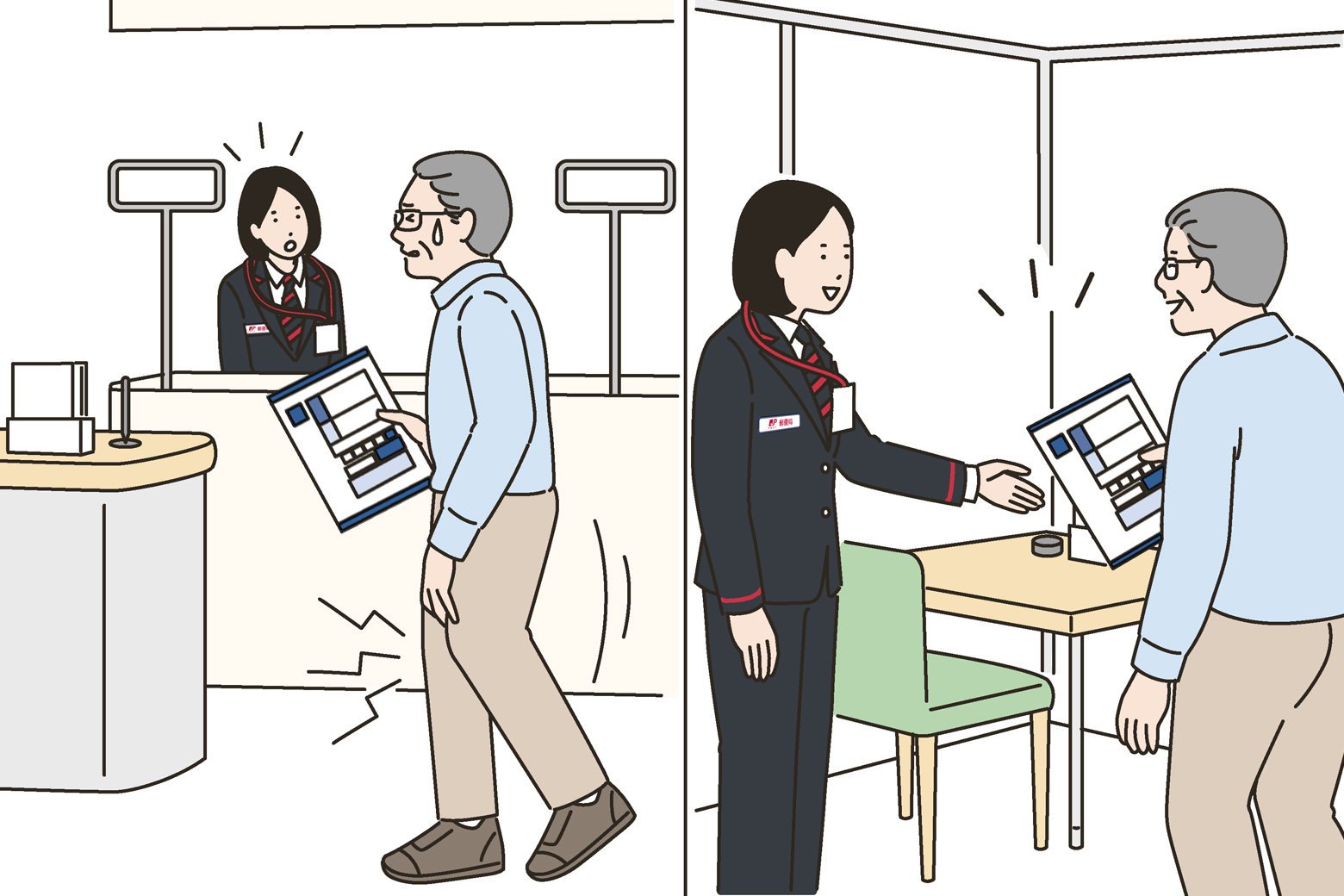 レターパックにあて先を記入しようとしていたところ、私が足を痛めていることに気づいてくださり、座って記入できるようにと筆記台と椅子をさっと用意して声をかけてくださったことが大変うれしかったです。