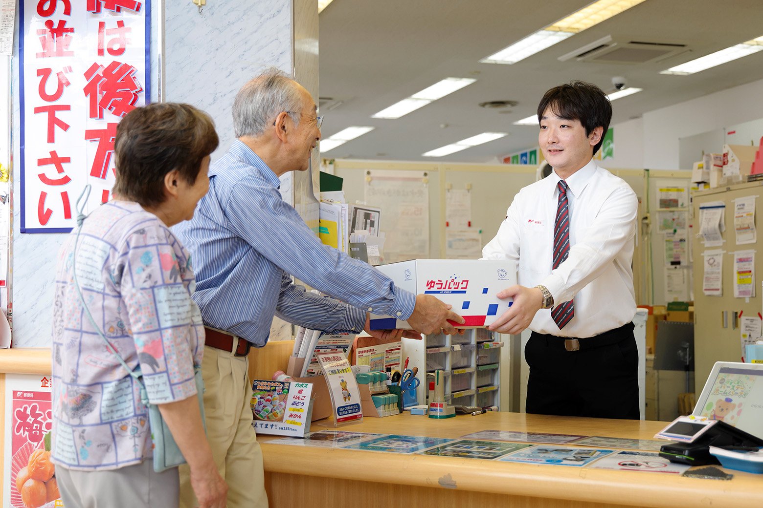 お客さまが「来てよかった」「また郵便局を利用したい」と感じ、選んでいただけるような"地域に愛される郵便局"を目指しています。