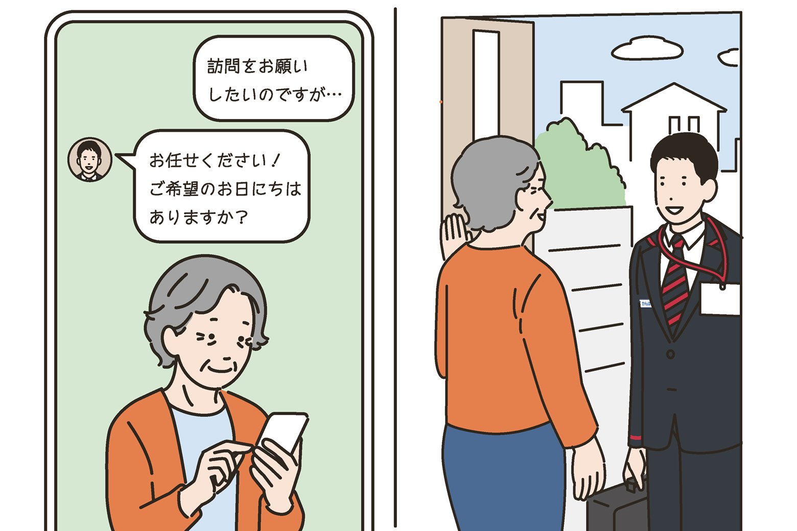 以前、「ご契約内容確認活動」で訪問していただいた際に、メッセージアプリの登録をしておいてよかったです。