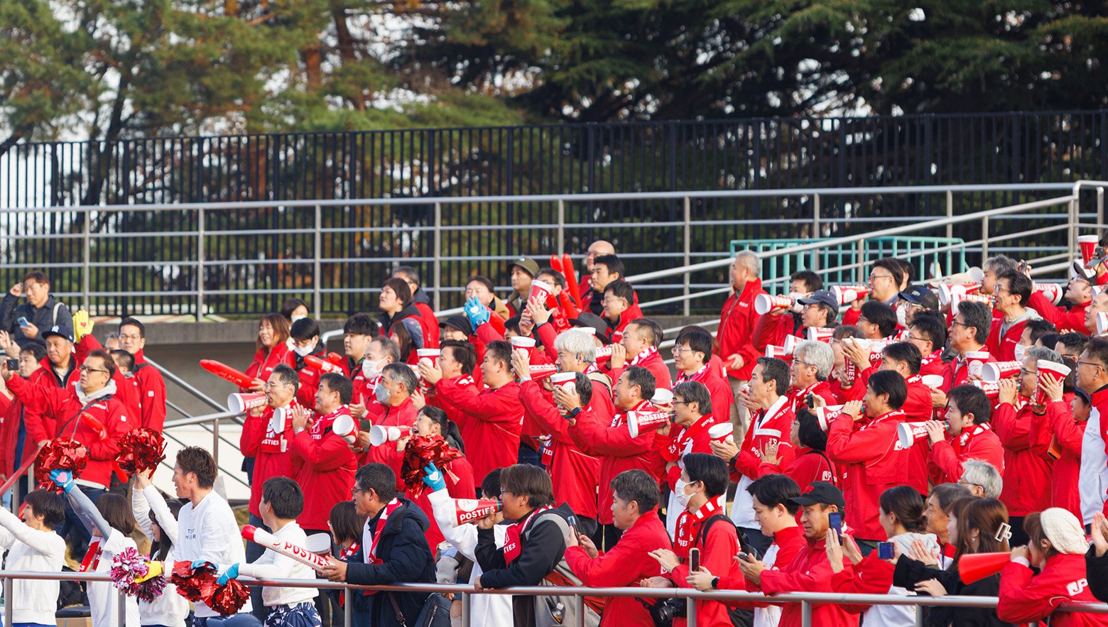 沿道やスタンドから大声援。大会随一のPOSTIES応援団