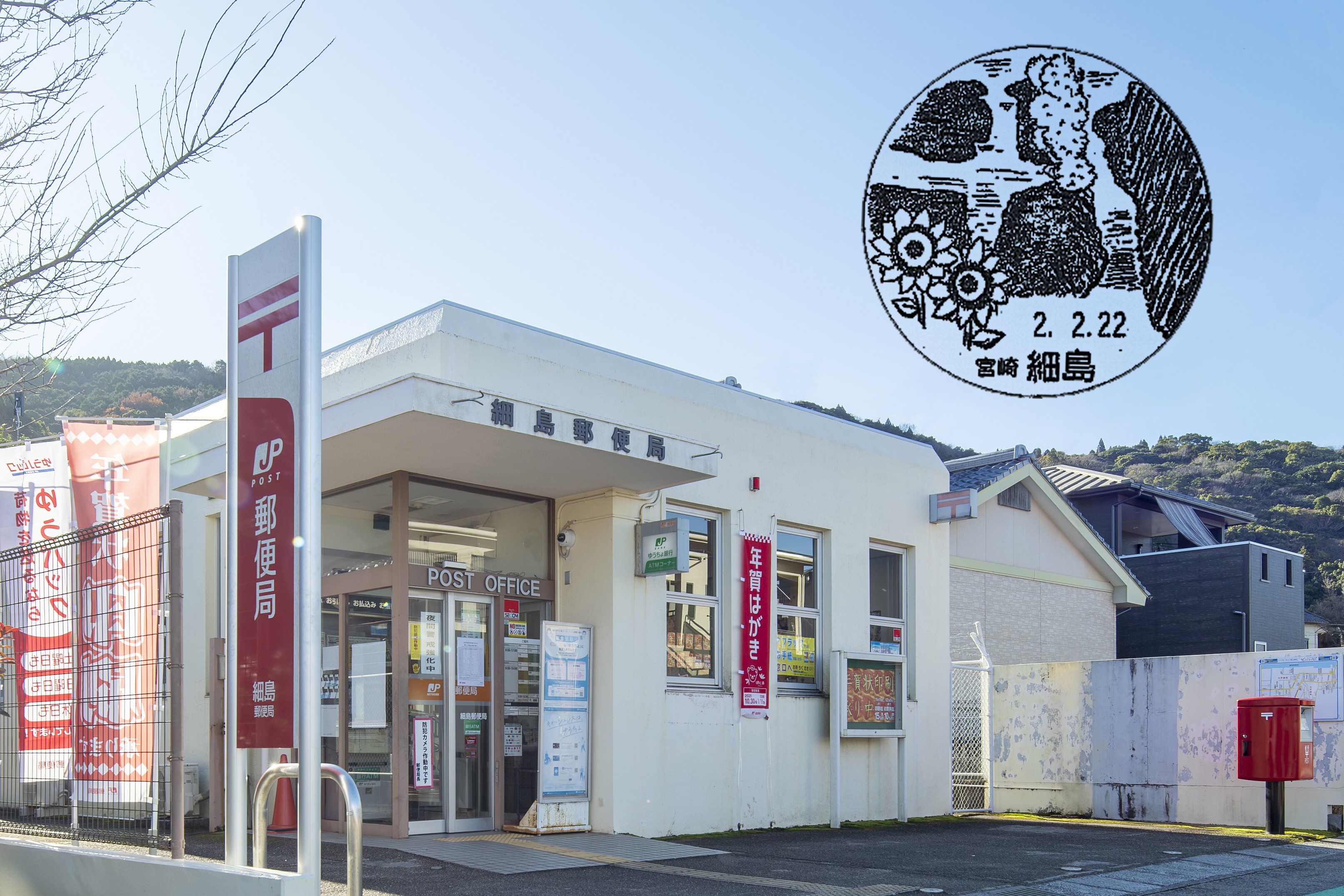 日向岬・馬ヶ背を訪れたあとに、ぜひ立ち寄りたいのが細島郵便局です。ここでは、馬ヶ背の風景を描いた風景印を押すことができ、旅先で感じた感動を、そのまま大切な人へ届けることができます。