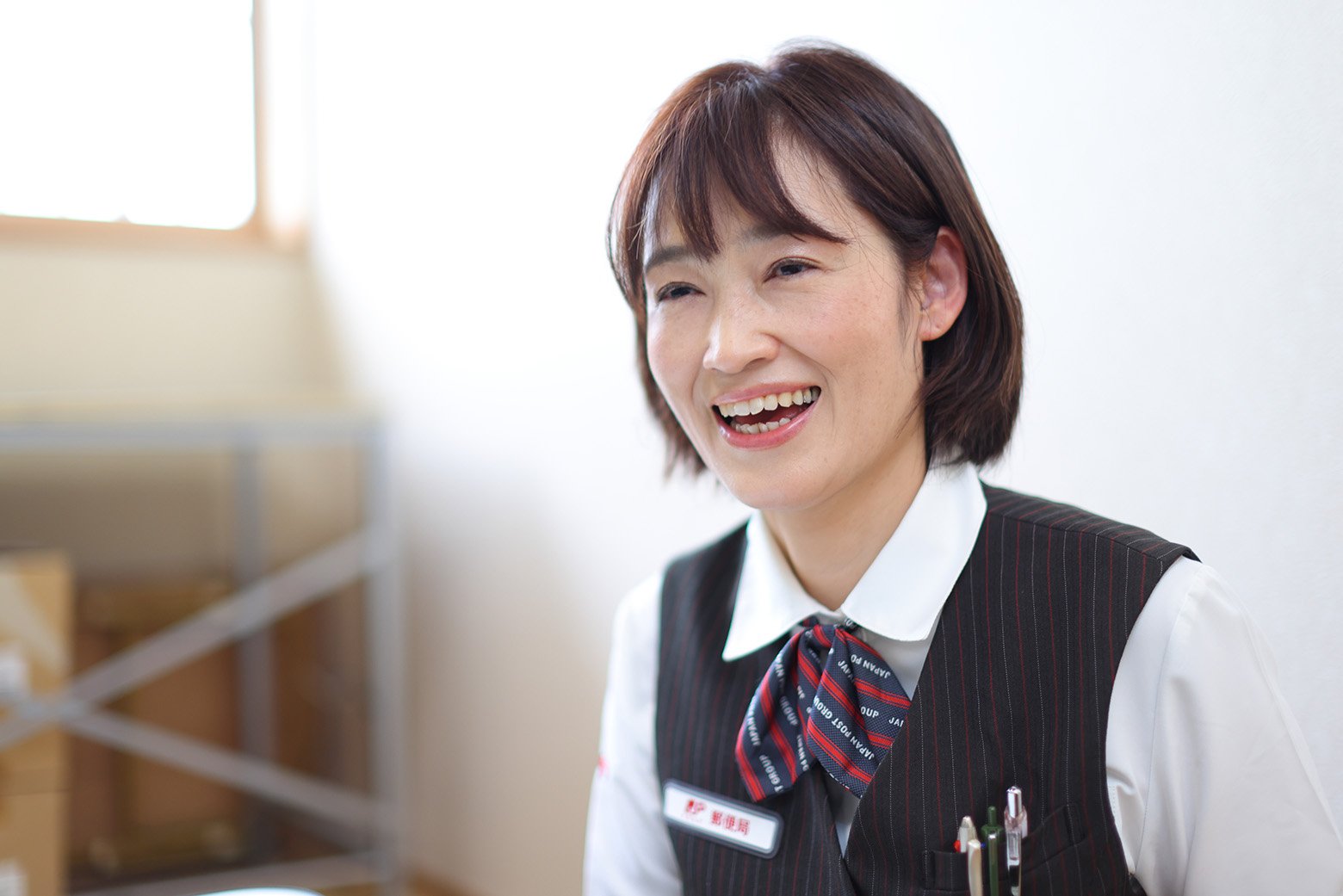 高橋:窓口では、郵便や貯金の業務のほかに、地域の特産品の販売にも力を入れています。お客さまには、兼業で農作業をしているというお話もするのですが、果樹の品種や特徴、収穫時期などの情報を正確にお伝えできるようになり、郵便局の売り上げにもつながっていると思います。物販業務も自信を持って取り組めることは、新しいやりがいになっています。