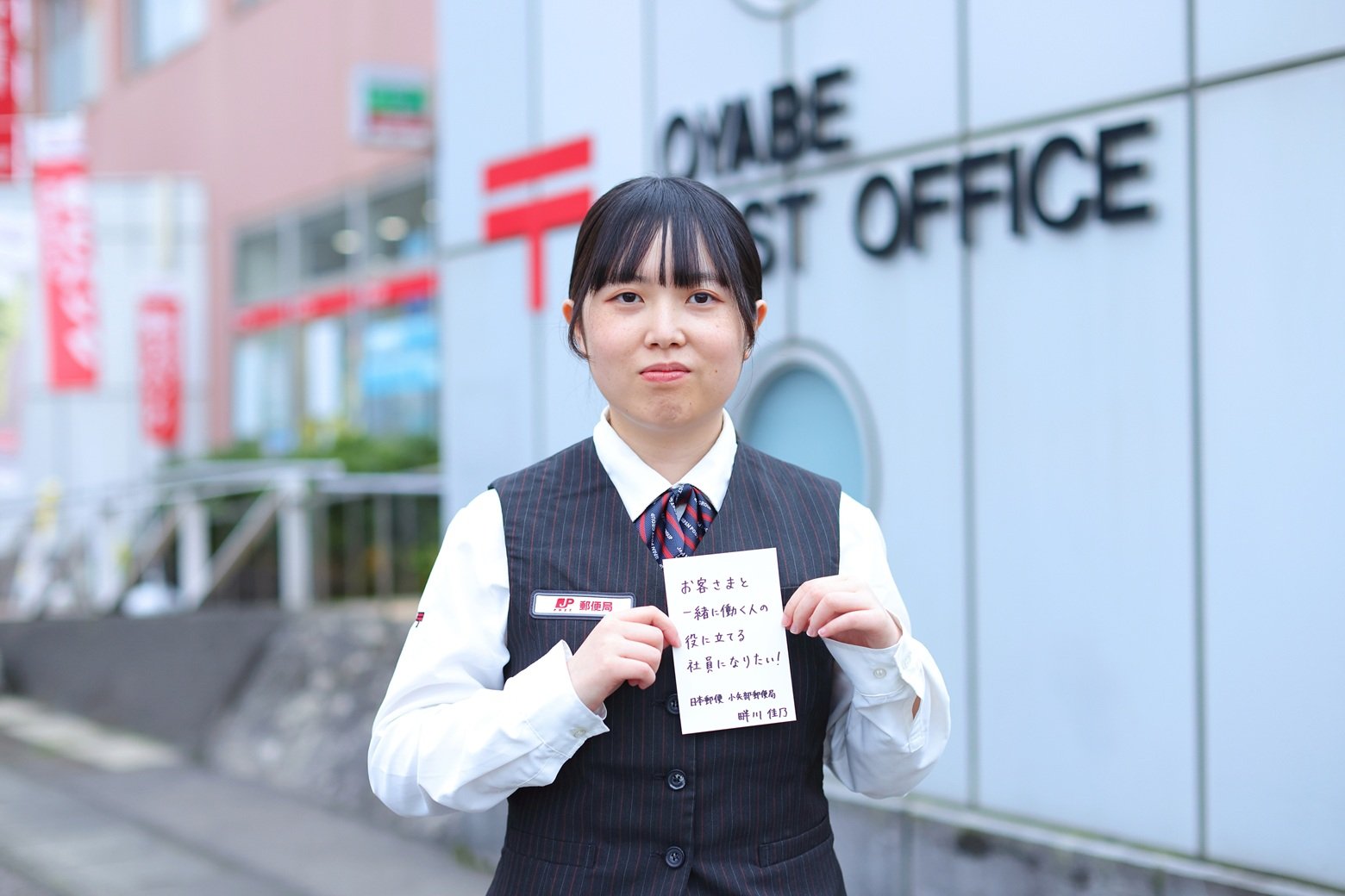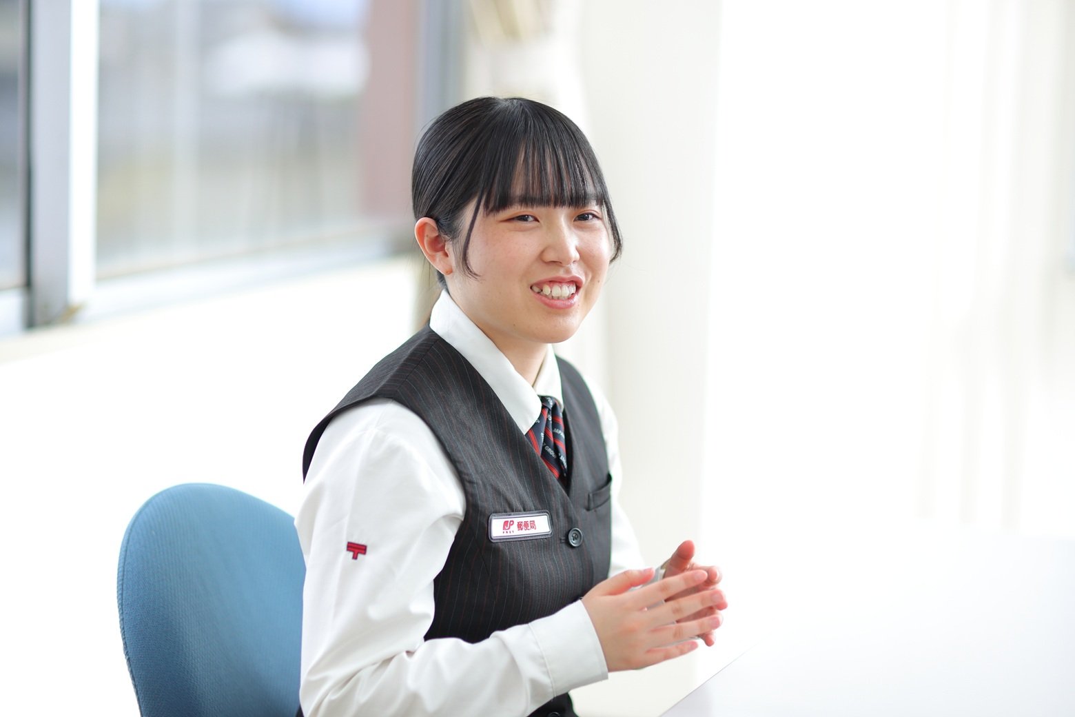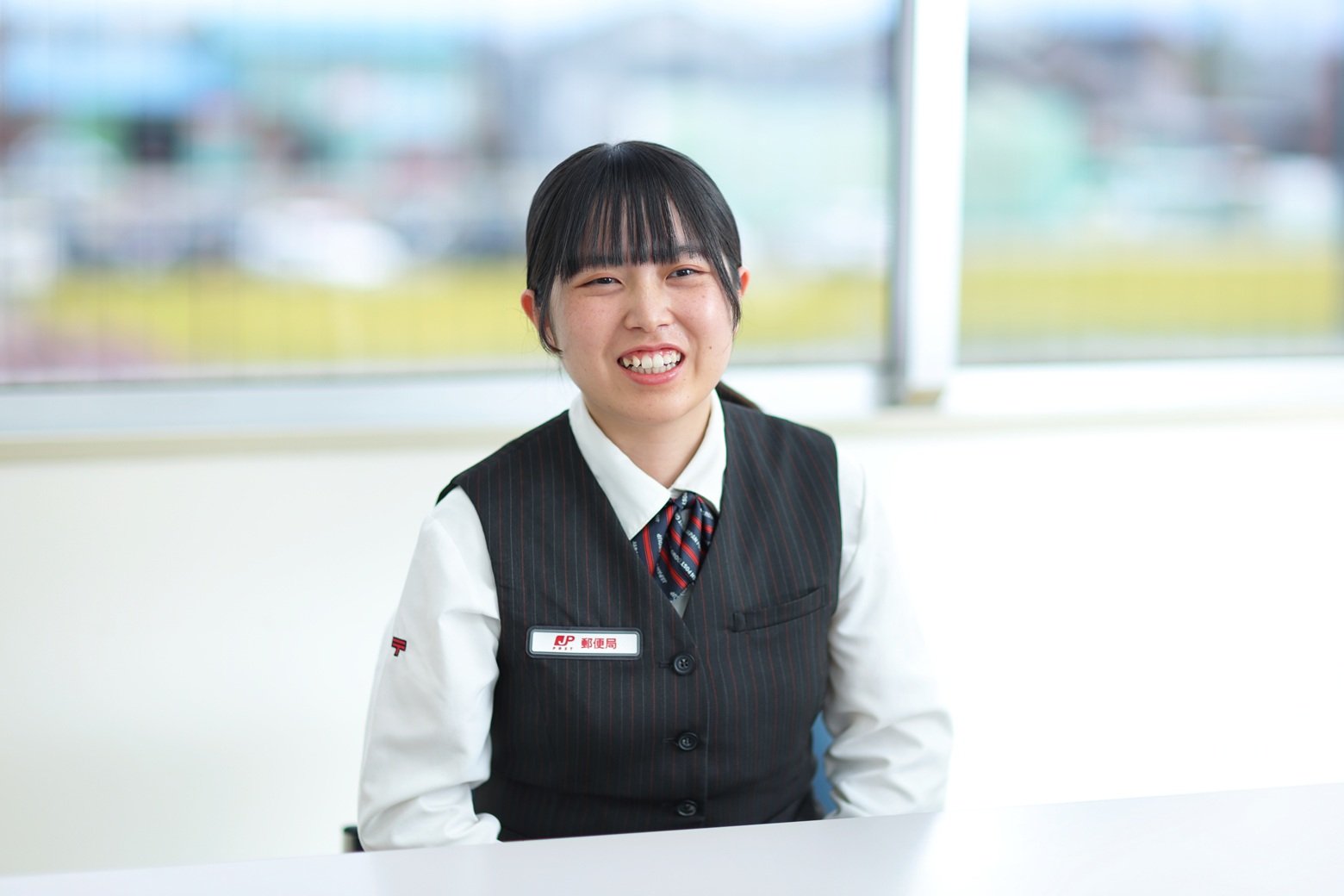 2025年、日本郵便株式会社に入社。小矢部郵便局に配属となり、窓口業務を担当している。