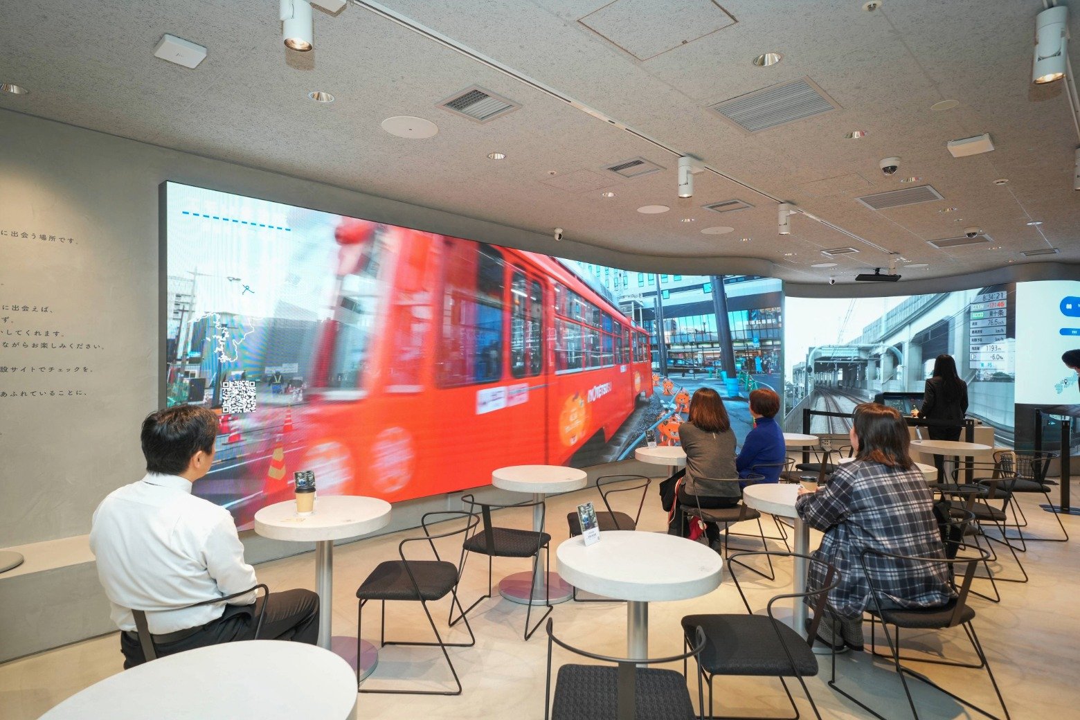 佐久間:例えば、コーヒーや軽食を楽しみながら、魅力的な各地の映像を、店内いっぱいに広がる大型ビジョンで見られたり、AIを活用して旅先選びのヒントを得られたり、オンラインコミュニティを通じて全国の人々と交流することができます。