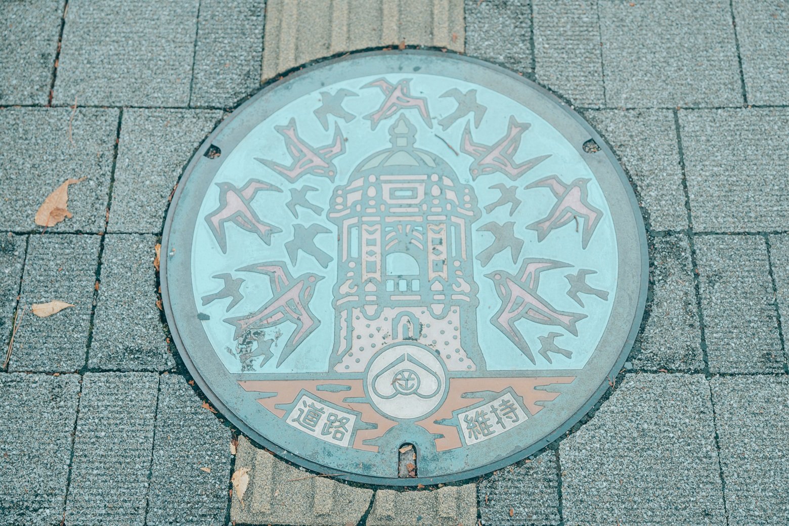 日本初の登録有形文化財でありながら今も現役の庁舎で、館内を自由に見学できたのでちょっと寄り道。1階正面階段の途中、中庭へと続くステンドグラスの扉越しに幻想的な光が差し込み、時間を忘れるほどの美しさでした。
