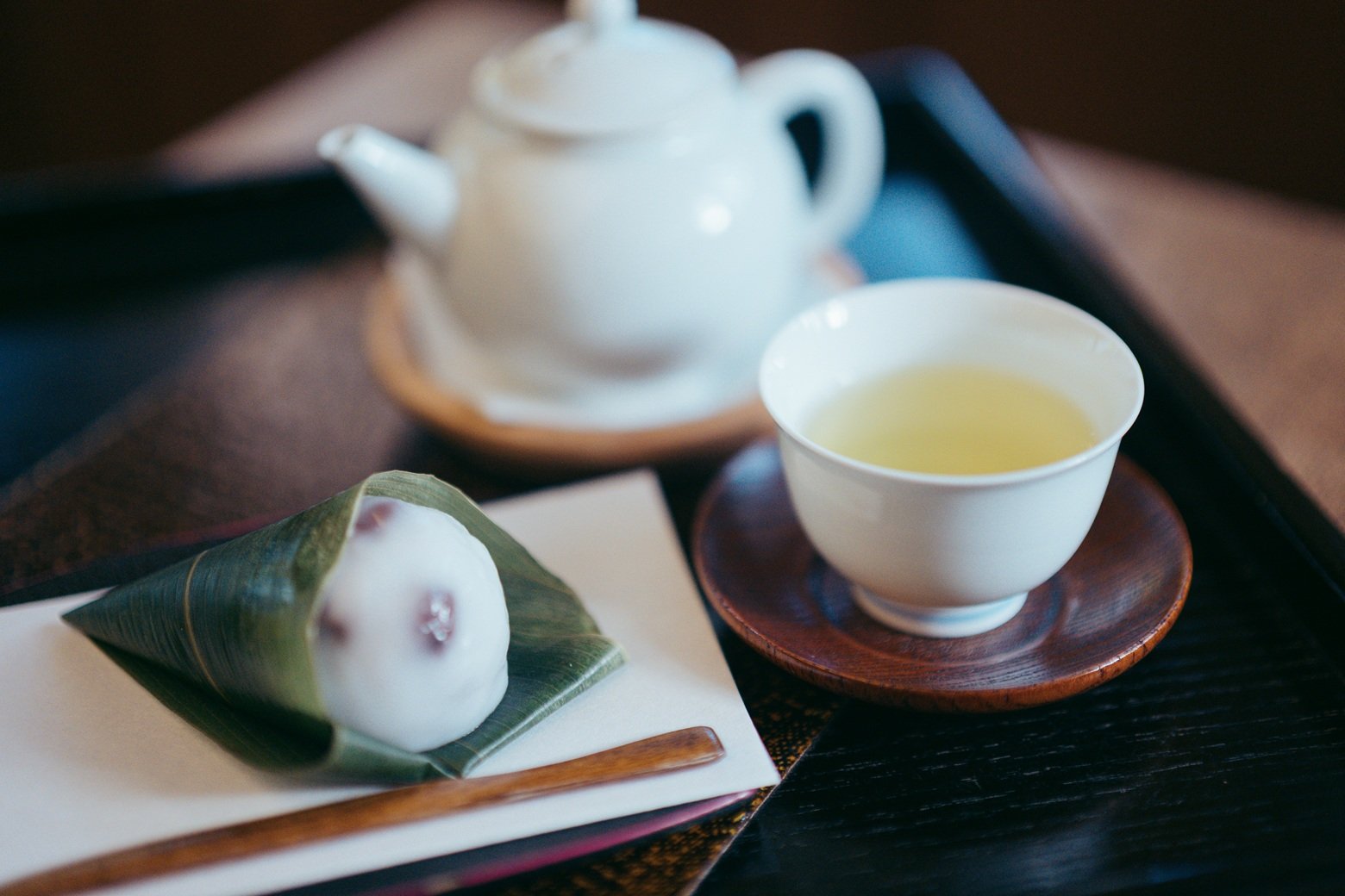 茶を注ぐ音に耳を澄ませ、静岡名産の緑茶を一口。浅蒸し茶のわずかな渋みと、後に残る甘みを味わいました。おいしいお茶のおかげで、足の疲れがすっと抜けていくのを感じました。