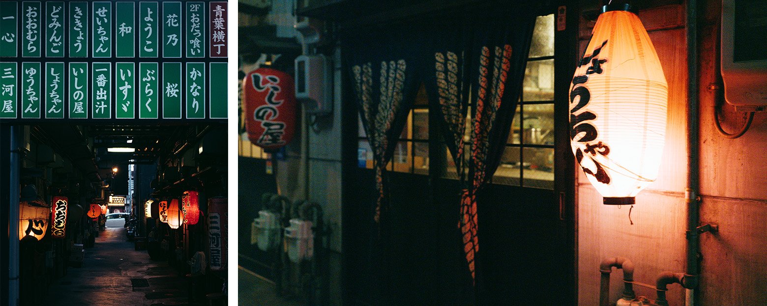 静岡には昭和30年代の屋台文化をルーツに持つおでん店がたくさんありますが、代表的なのがこの二つ。20軒ほど店が並ぶ「青葉おでん街」は、ネオンや花飾りで彩られ、昭和レトロを感じさせるノスタルジックな雰囲気です。