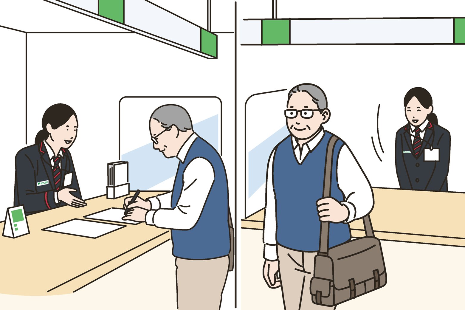 社員の方がいつも丁寧に用紙の記入方法や手続きについて説明してくださいます。
