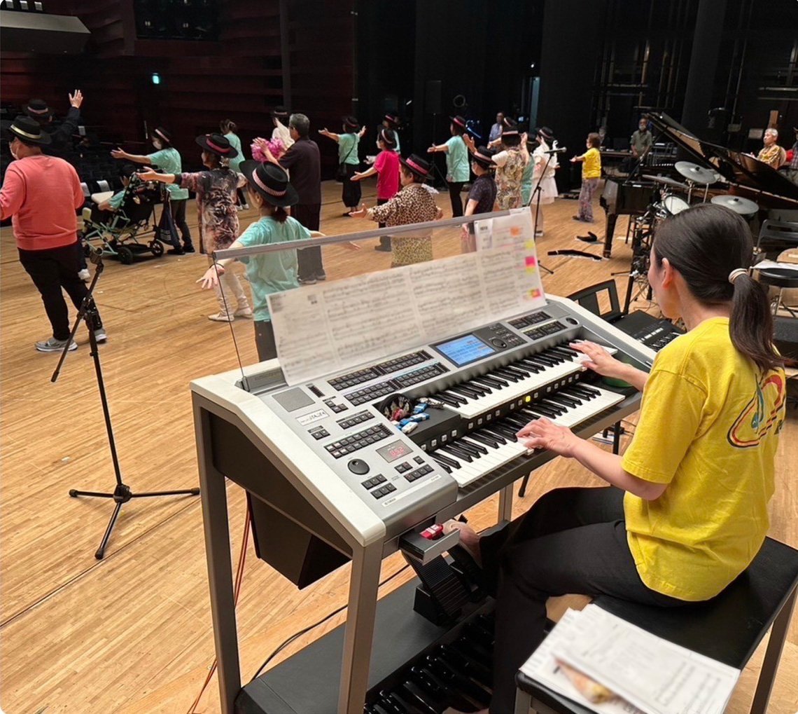 藤野:私たちが日ごろ訪問している施設の利用者や、百瀬ミュージックボランティアグループの活動理念に賛同する個人ボランティア・団体が参加し、立場の違いを超えて集う、多様な出演者によるコンサートです。私はグループの一員として、ダンス指導や曲の構成、練習スケジュールの管理といった裏方を担当するほか、演奏者としてステージに立ち、エレクトーンの演奏も行っています。レパートリーはポップス、演歌、童謡、民謡など幅広く、100曲以上あります。
