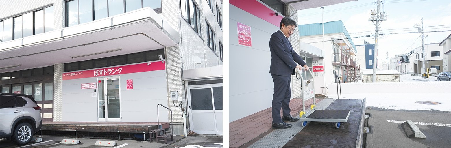 郵便局の空きスペースを活用した、貸しトランクルーム「ぽすトランク」。