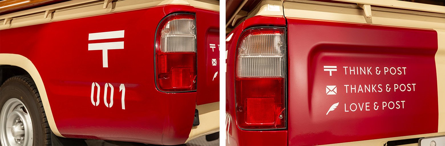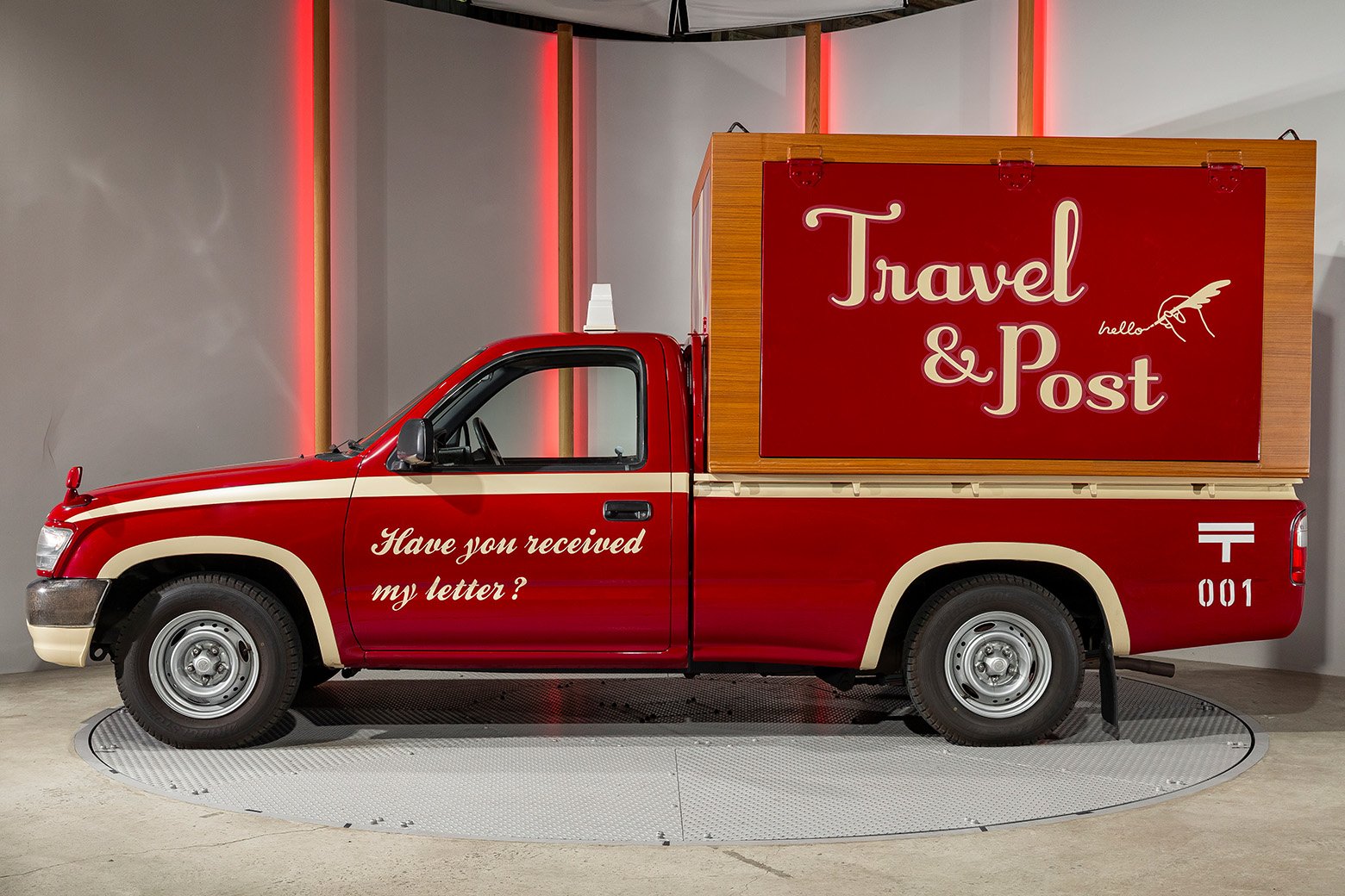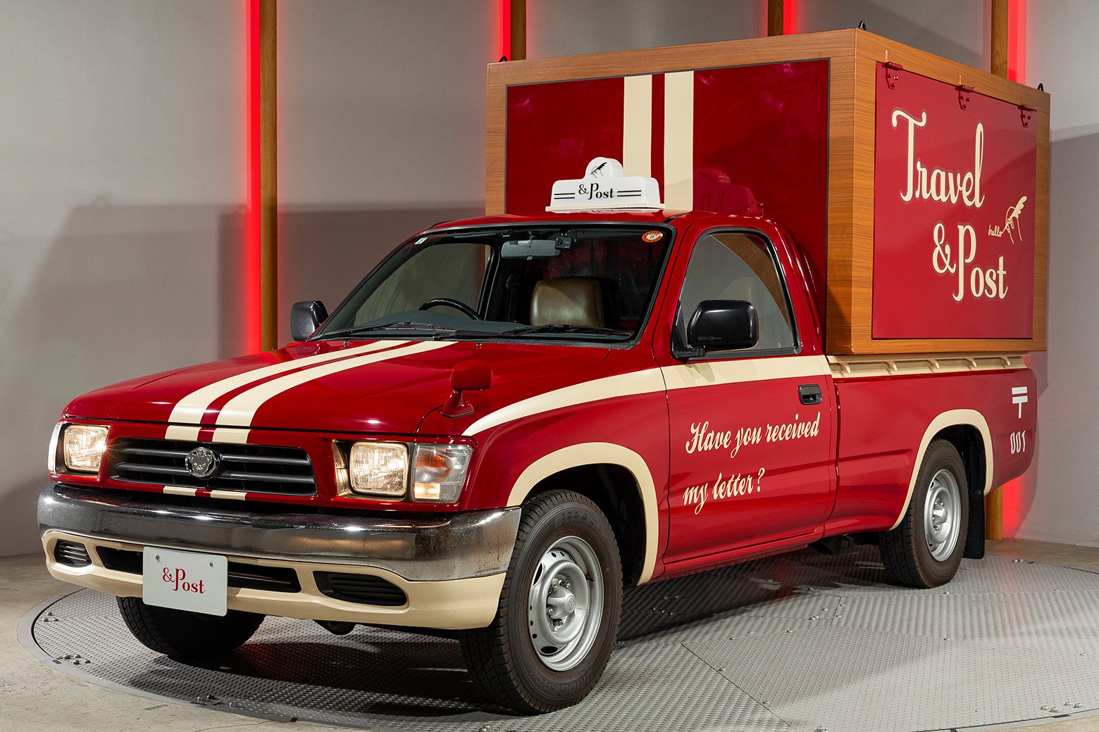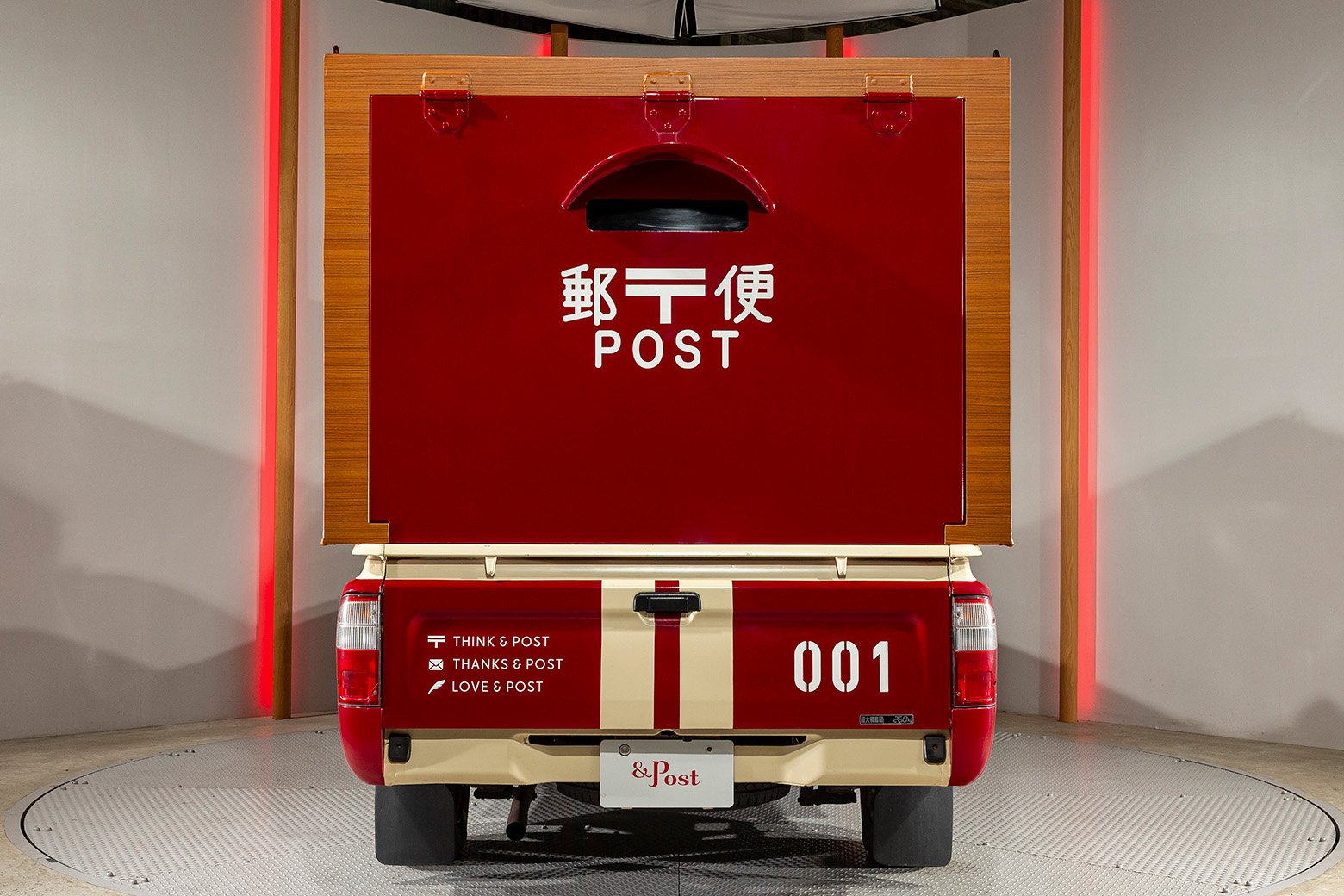 「⼼に残る⾵景に出会った瞬間に、絵はがきを差し出すための環境を提供する」というデザインコンセプトのもと開発されたポストカーは、とてもレトロな雰囲気の見た目。車は、かつて郵便車として使われていた6代目「トヨタ・ハイラックス」がベース。赤いボディカラーも、当時の郵便車の色を意識しています。