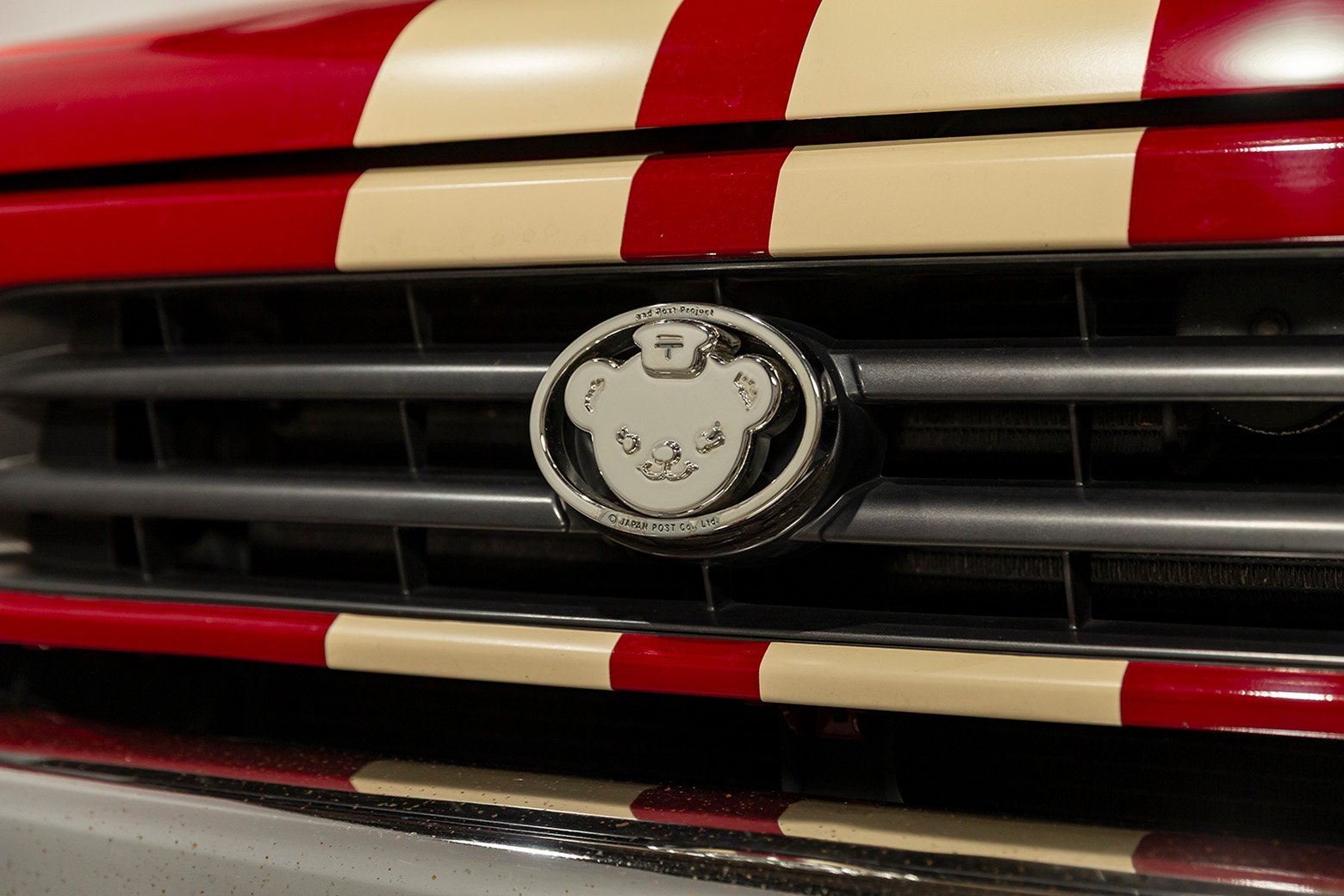 フロントのぽすくまエンブレム、丸型ポストの投函口を意識したディテールなど、「郵便らしさ」を表現したデザインも、このポストカーならではのもの。