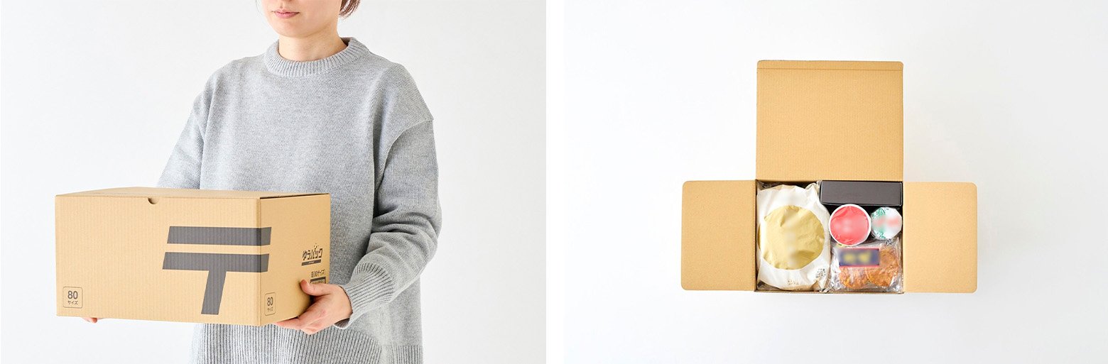 80サイズでは、2kgのお米に加えてパックご飯やカップ麺、缶詰や箱入りのお菓子など、大きめの食品も入れることができました。お土産などパッケージのまま届けたいときに役立つサイズです。