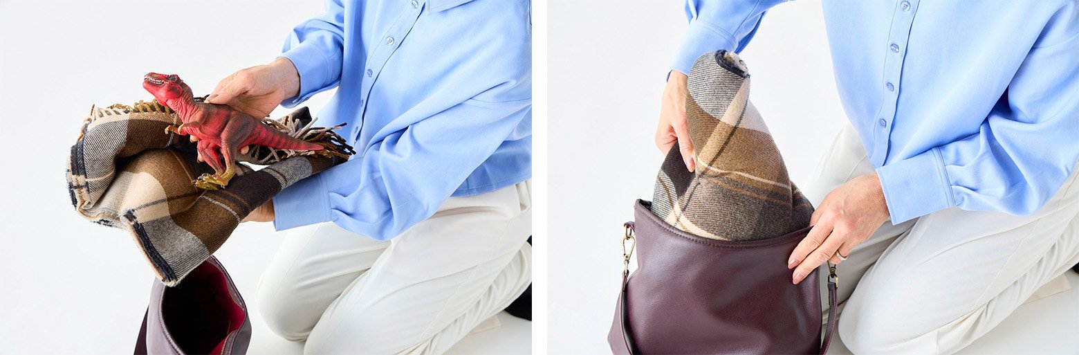 バッグを送る際は、中に発送するほかのものを入れるのが賢い方法。スペースの節約と同時にバッグの型崩れ防止にもつながります。尖った部分がある玩具や小物などは、タオルやマフラーなどで一度くるみましょう。いっしょに送るものを使って梱包すれば、梱包材も要りません。
