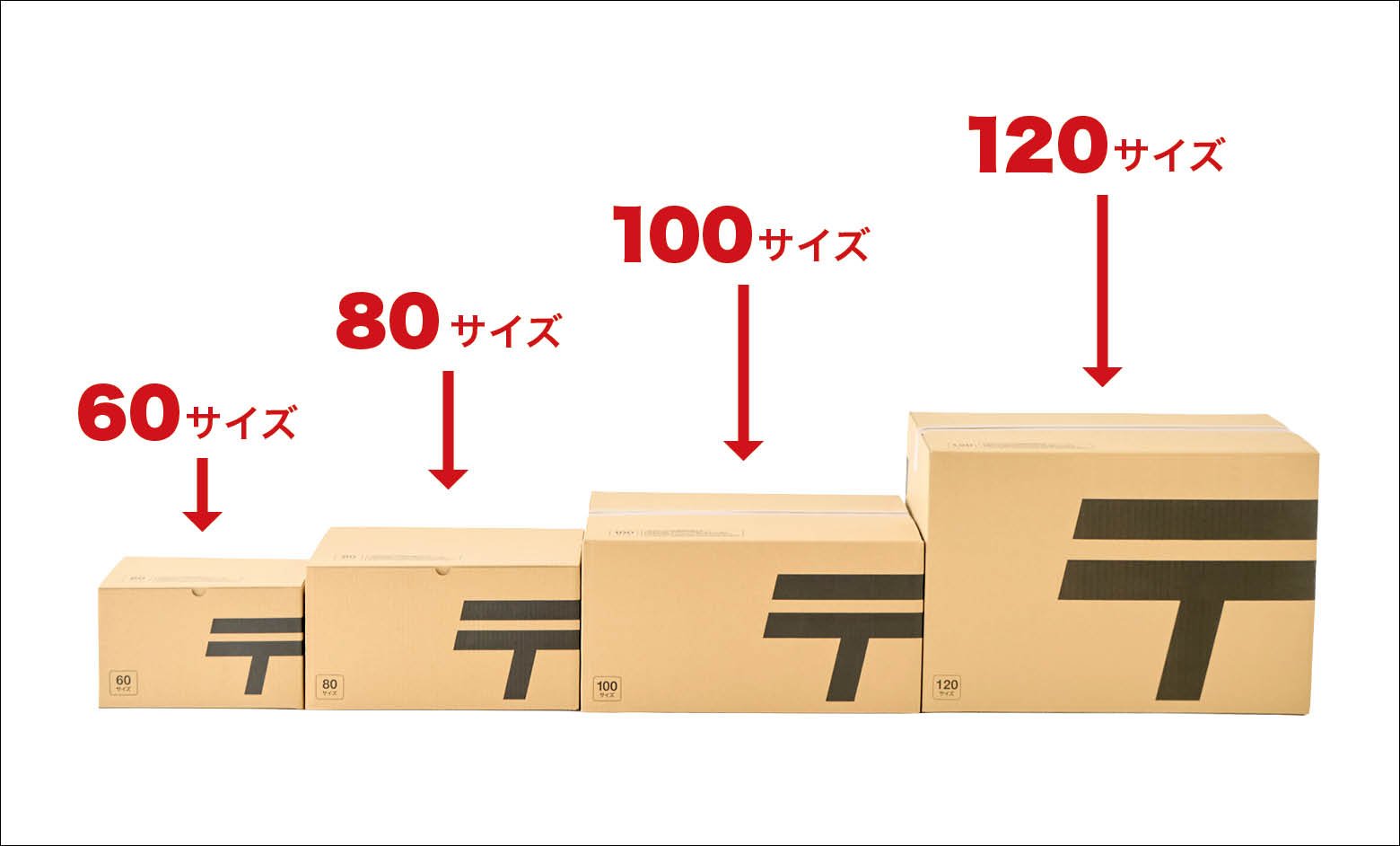 なお、郵便局で販売されている、ゆうパック用の箱は120サイズまでですが、荷物が多い場合には、ご自身で用意した140サイズ以上の箱で発送することもできます。