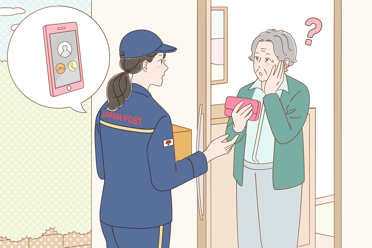 訳もわからずお金を支払おうとしたところ配達員さんが「相手先に注文した商品かどうかを確認してから受け取っても大丈夫ですよ」と教えてくださいました。